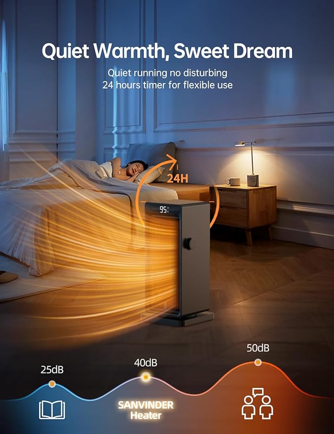 Space Heater, SANVINDER 1500W Portable Electric Heater for Bedroom