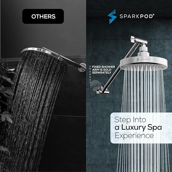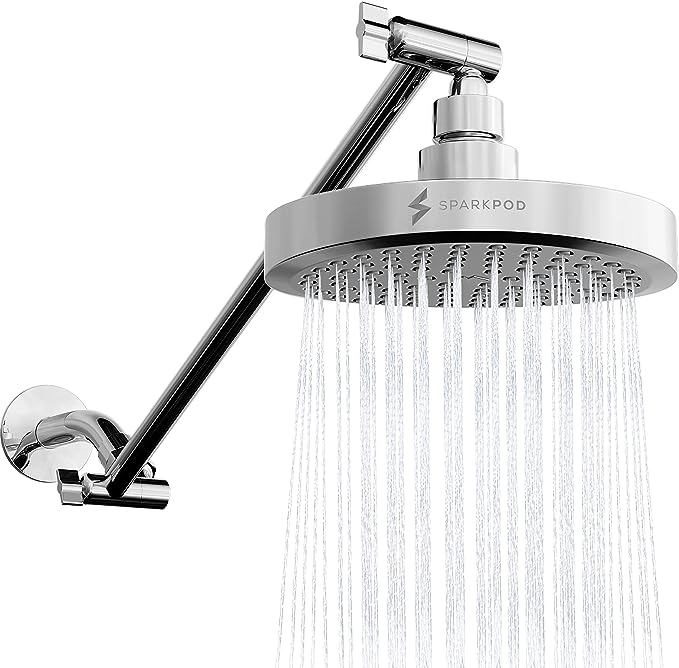 - Ideal shower head extension arm: SparkPod’s Shower Arm has a rotating elbow which allows for maximum shower coverage. Combined with our energy saving shower head, you will have the perfect shower set up for years to come.