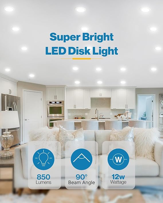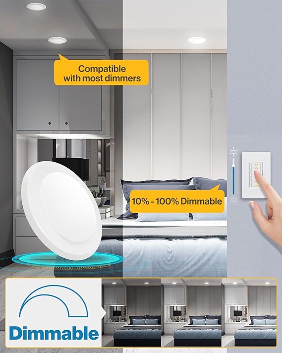 - ✅ DIMMABLE – Seamless dimming capabilities (100%-10%) to fit any mood or decor. Our sleek LED Disk recessed lights provide sunlight-like quality (CRI90+) for true color rendering. Ideal applications include bedroom, kitchen, living areas, closets, hallways, and offices.