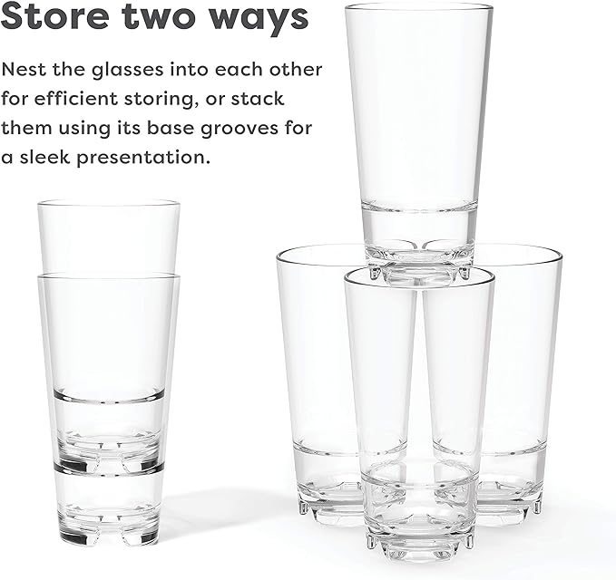 TOSSWARE RESERVE 20oz Stacking Cooler, SET OF 24, Premium Quality, Tritan Dishwasher Safe; Heat Resistant Unbreakable Plastic Beer Glasses, Clear