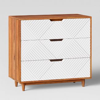 Design your home in a way that speaks to your artistic style and innovative aesthetic all while inspiring those who walk through the door with this Touraco Dresser from Threshold™. The white drawers with textured lines draw your eye in, contrasting the hardwood top and frame to make this a stand-out piece in any room. Perfectly complementing the rest of your home’s decor, style it with a decorative lamp and coffee table books to create an eclectic look that you’ll love.