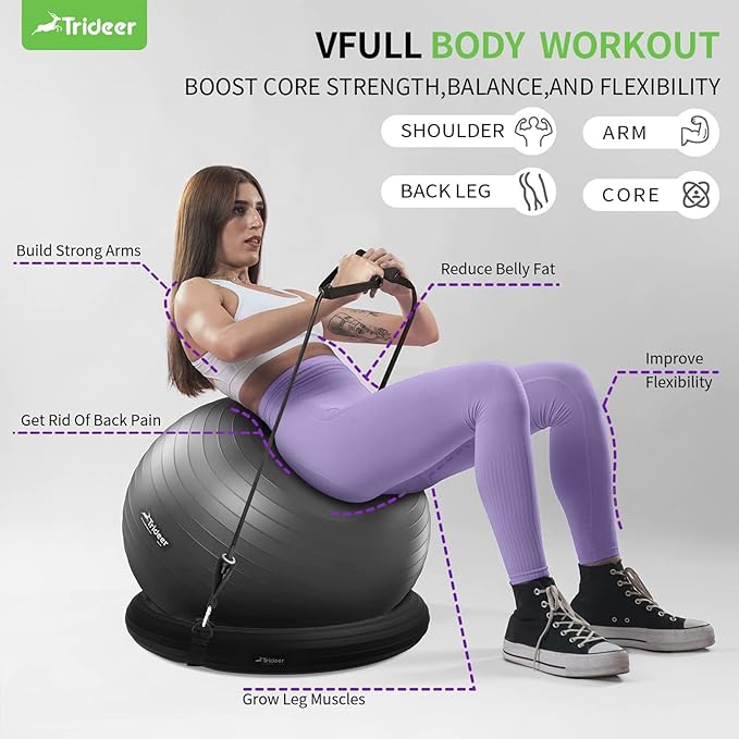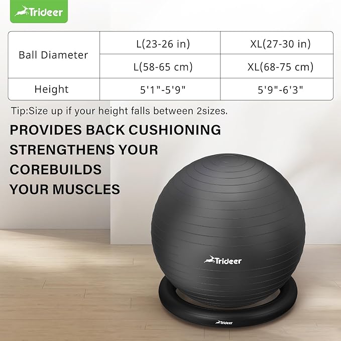 - 【Pregnancy Safety Materials】To ensure your safety, Trideer stability ball with a maximum load-bearing capacity of 331 lbs is made of PVC material imported from Japan. Free of harmful heavy metals (Pb, Cd, Hg, etc.) and 10 heavy metal salts,5x Stronger than a regular gym ball, be sure to include the Trideer ball as part of your exercise plan. As a durable ball chair for office and workouts, it’ll witness your exhilarating fitness journey from a beginner to an advanced exerciser.