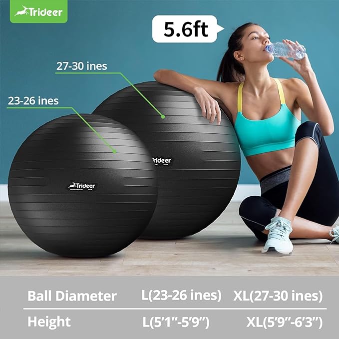 - 【Lifetime Customer Service】We care about our customers deeply, so please never hesitate to contact us should any problem arise. Trideer Exercise Ball covered by free refund service, free no hassle replacement. NO RISK PURCHASE – If you are not satisfied with our product, we will do our best to solve your problem within 24 hours.