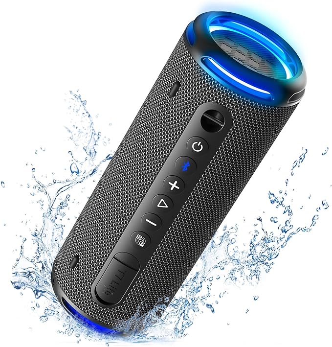 - 【IPX7 WATERPROOF DURABLE FABRIC】This wireless Bluetooth speaker is rain, splash, and splash resistant, and can even be submerged in 3.3 feet of water for up to 30 minutes. Plus, the durable fabric material and sturdy rubber cover protect the speaker during your outdoor adventures. Great for family gatherings or pool parties, beach parties, BBQs, biking, hiking, camping, and more