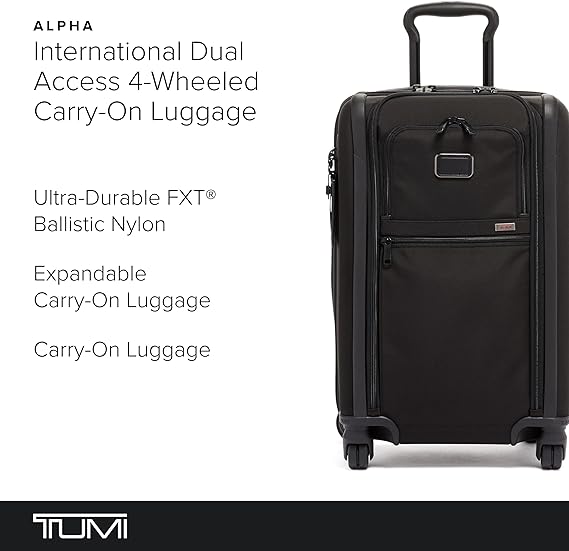 TUMI – Alpha International Dual Access 4-Wheeled Carry-On Luggage – With Built-In USB Port and Integrated TSA Lock – 22-Inch Rolling Suitcase for Men and Women