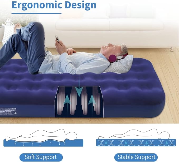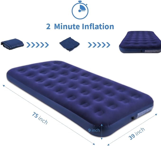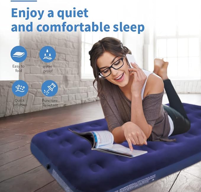 Twin Size Air Mattress Single Air Bed – Foldable Blow Up Mattresses with Flocked top – Portable Inflatable Beds with Patch Kit for Backpacking Tent Camping