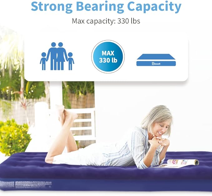 - ▸Stable Internal Coil Structure: This structure is able to withstand 330lb of weight and effectively prevents the inflatable bed from bulging. And make it more durable, greatly extending the life of the inflatable bed