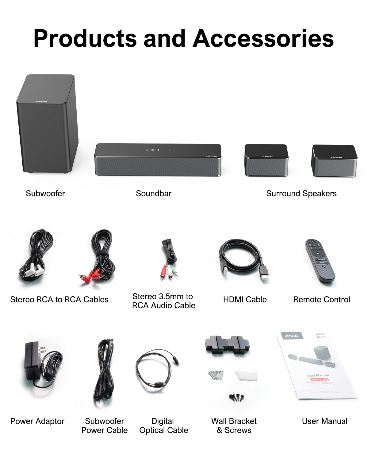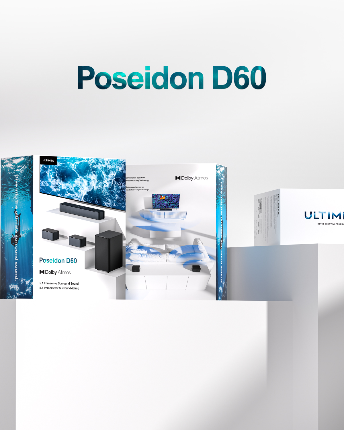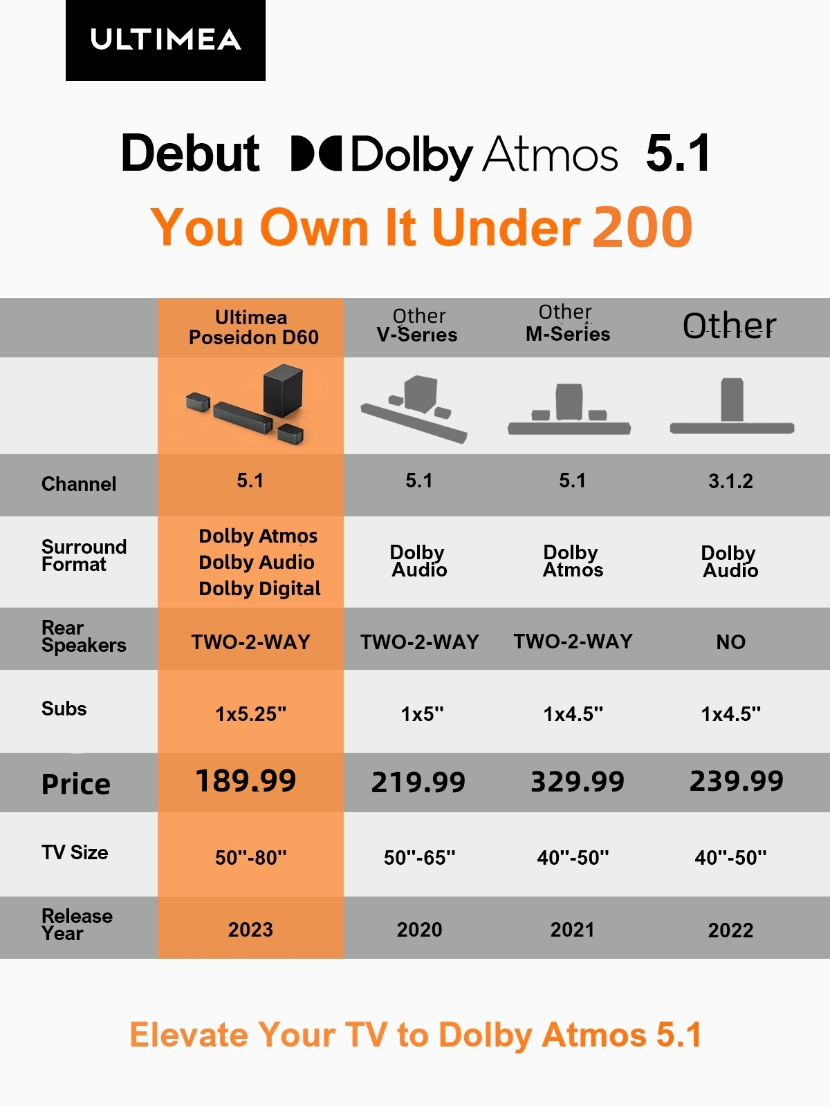 ULTIMEA 5.1 Dolby Atmos Sound Bar, 410W Surround Sound Bar for TV with Wireless Subwoofer, 3D Surround Sound System, Surround and Bass Adjustable Home Theater Systems TV Speakers, Poseidon D60 , 2023