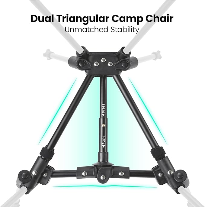- Unbeatable Stability, Endless Adventure: Harnessing the power of triangles, our camping chair ensures unparalleled stability on any terrain. Equipped with a dual triangular structure and anti-slip foot pads, it offers unwavering support. With a 330 lbs weight capacity, it\’s your reliable companion for camping, fishing, concerts, picnics, sports, travel, and beach activities. Experience worry-free relaxation with our trusted folding chairs by your side.