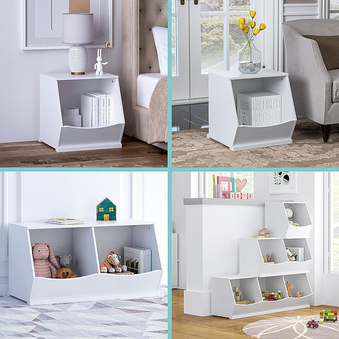 - Free assembly of the Kid’s Storage Cabinet: These toy storage units can be stacked according to your needs, placed in any shape; Its top with a fixed wooden strip, when stacked will be very solid, do not have to worry about instability caused by the fall.