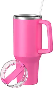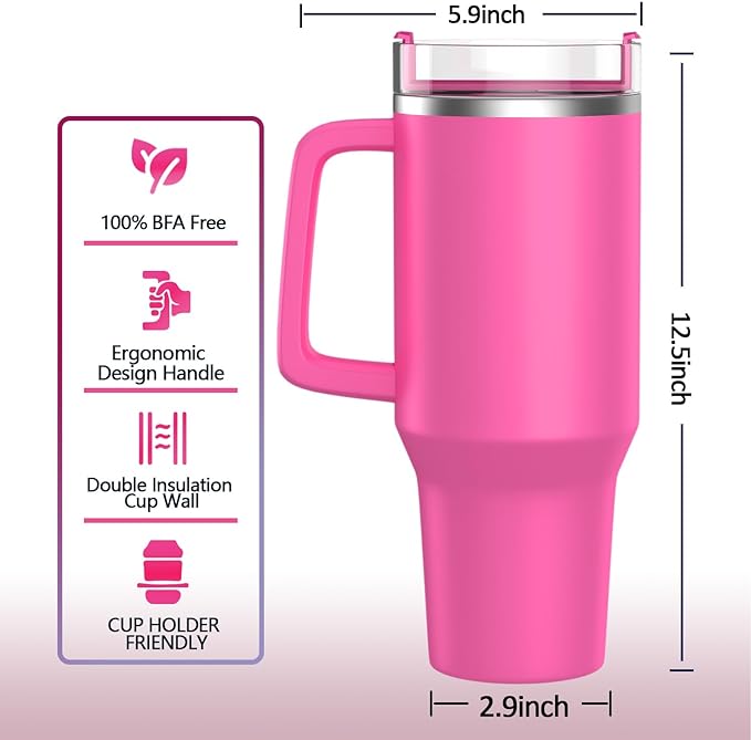 - [Eco-Friendly Concept Design] – We used food-grade, 100% BPA-free 18/8 stainless steel to make this reusable 40 oz tumbler with handle, which comes with a reusable straw to reduce plastic waste. We are committed to the sustainability of the Earth.