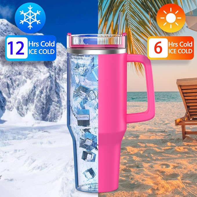 - [Portable Large Capacity Tumbler] – The 40oz large capacity insulated mug holds plenty of drinks. Wherever you go, you can easily enjoy plenty of water, coffee, tea, shakes or juice. This tumbler can be used in both direct drinking and straw drinking ways.