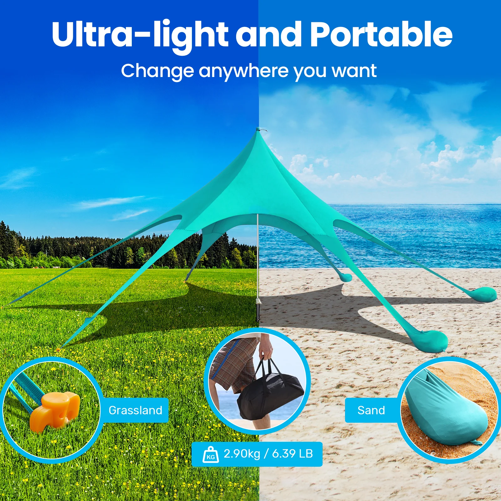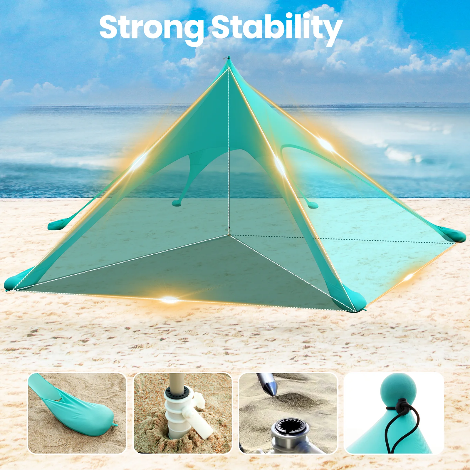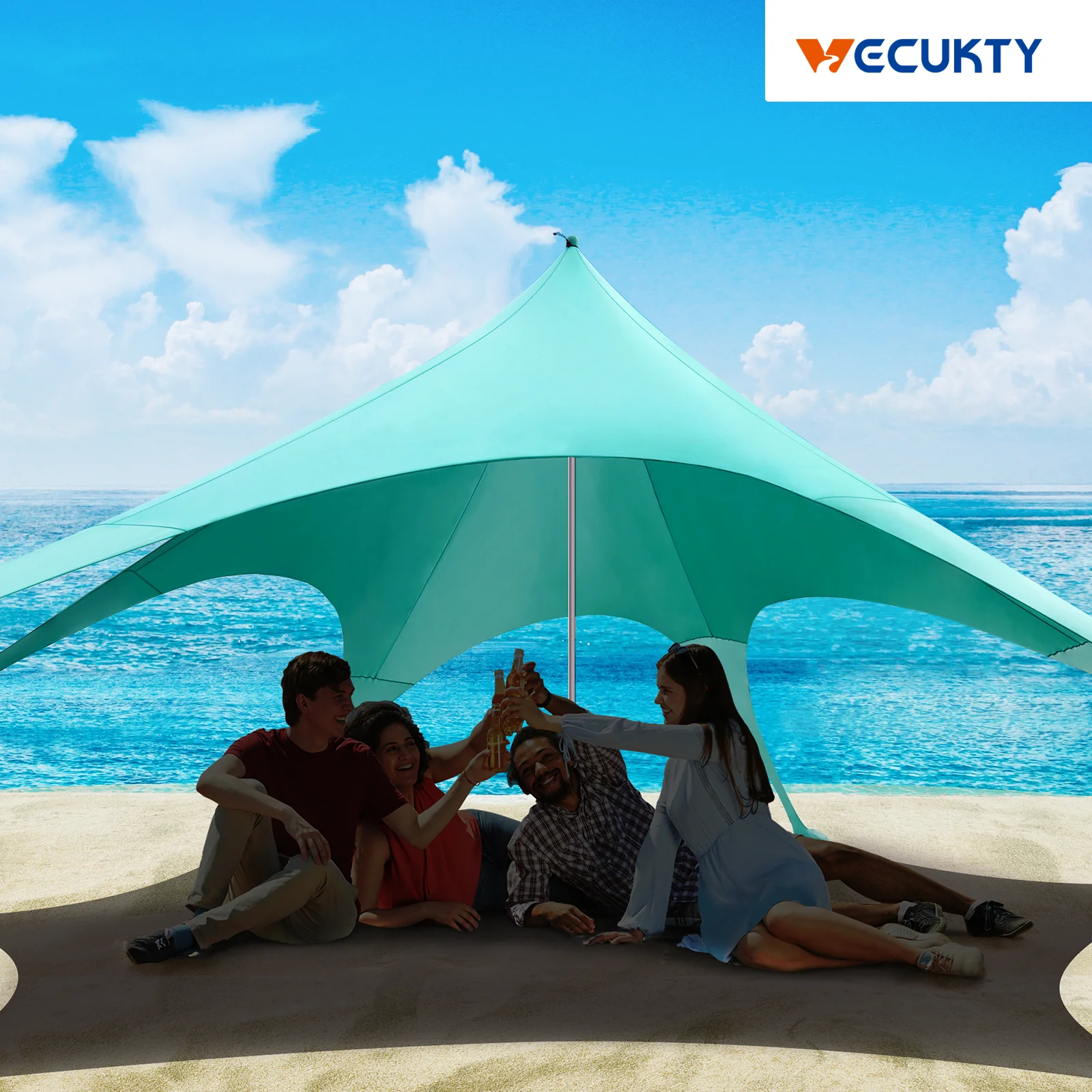 VECUKTY Beach Canopy Tent, 12×12 FT Beach Sun Shelter Sun Shade UPF 50+ UV,Turquoise
