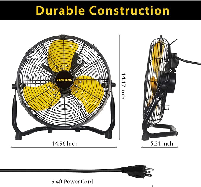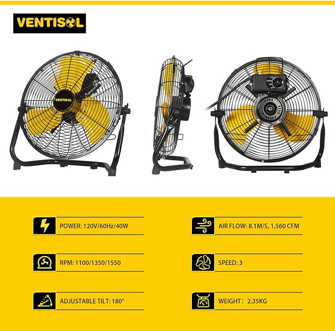 • Built to Last Electric Fan: All metal construction floor fan,powder coated in black. Premium ball bearing motor ensures lasting durability, while with rubber pads help to maintain stability for vibration-free. All Ventisol fans’ motor is guaranteed for 5 year in a correct operation.