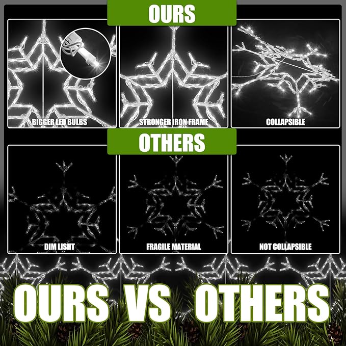 - Reliable Material: the 36 inches 162 LED Snowflake Lights are composed of a quality metal frame that’s designed to be partially foldable without easily breaking; This reliable material makes the longevity of the product, making it a suitable adornment for outdoor festivities and winter celebrations year after year