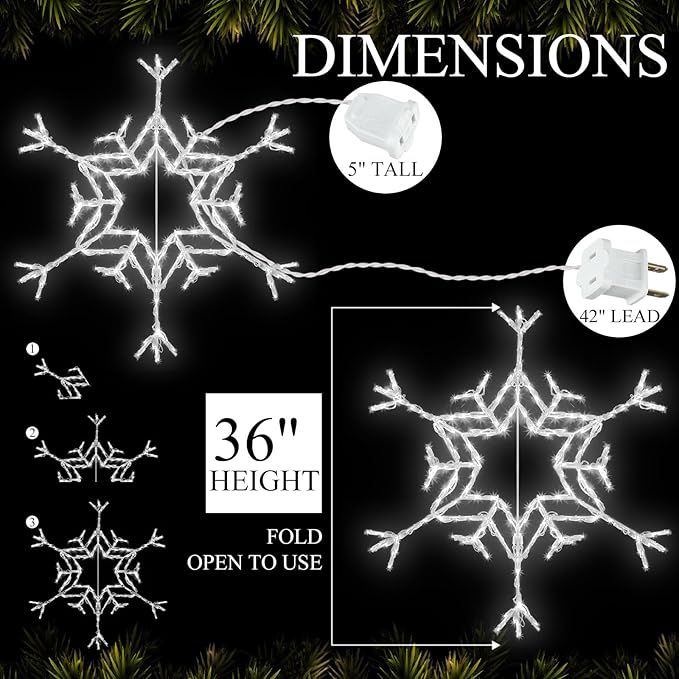 - Reliable Material: the 36 inches 162 LED Snowflake Lights are composed of a quality metal frame that’s designed to be partially foldable without easily breaking; This reliable material makes the longevity of the product, making it a suitable adornment for outdoor festivities and winter celebrations year after year