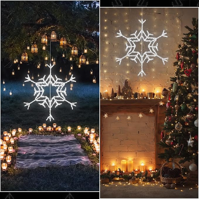- Delightful Snowflake Shape: taking the iconic form of a snowflake, these large lighted snowflakes outdoor bring a touch of winter magic wherever they’re installed; It’s a timeless design, adding a dash of seasonal charm to any setting