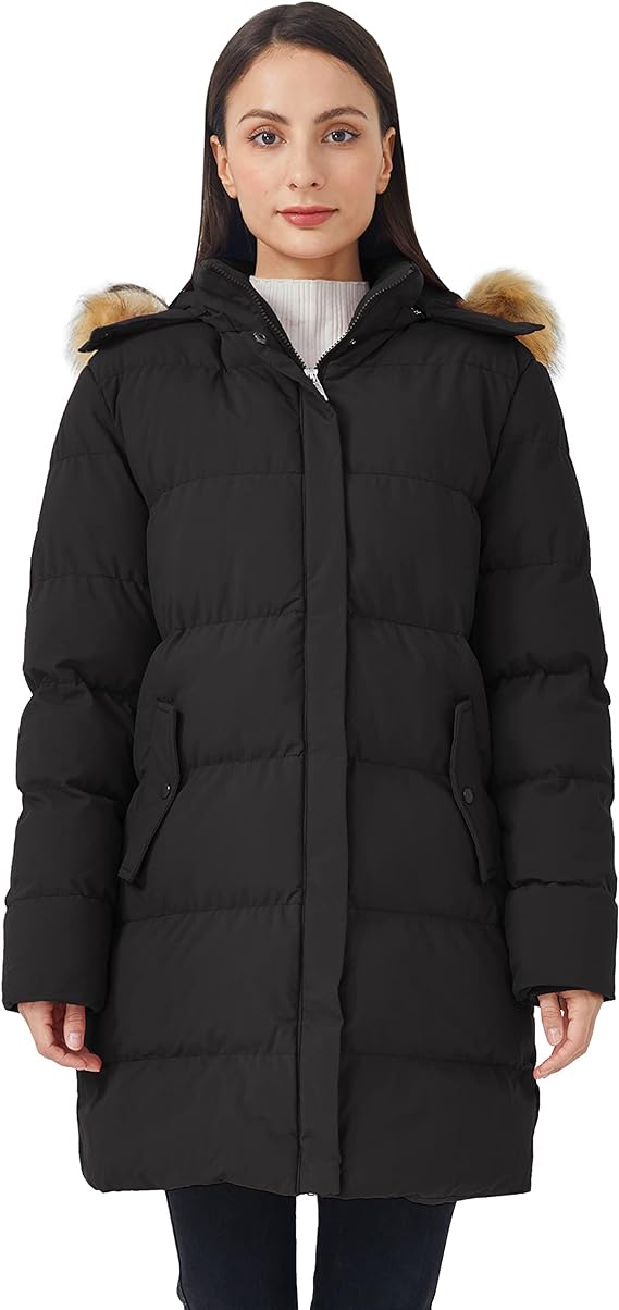 - Head to thigh warmth – When used, the detachable hood lined with a removable faux-fur trim gives additional warmth and protection for your head, neck, and ears. Perfect for when you’re walking outdoors.