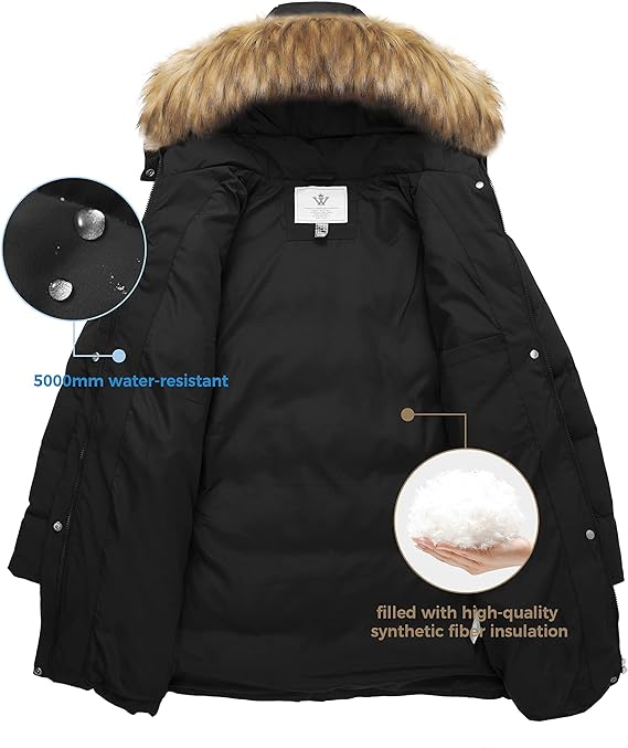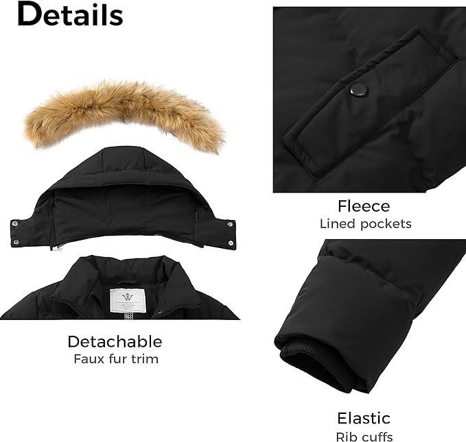 WenVen Women’s Winter Thicken Puffer Coat Warm Jacket with Faux Fur Removable Hood – XL
