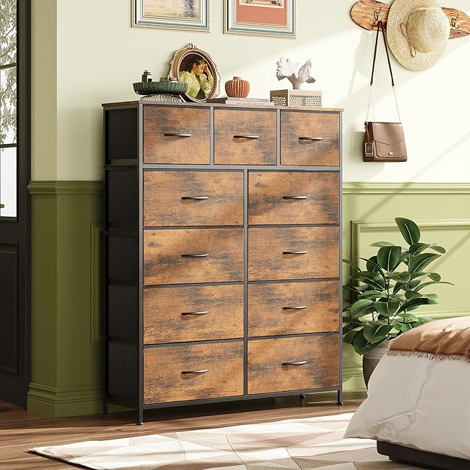 WLIVE 11 Drawer Dresser, Steel Frame, Wood Top