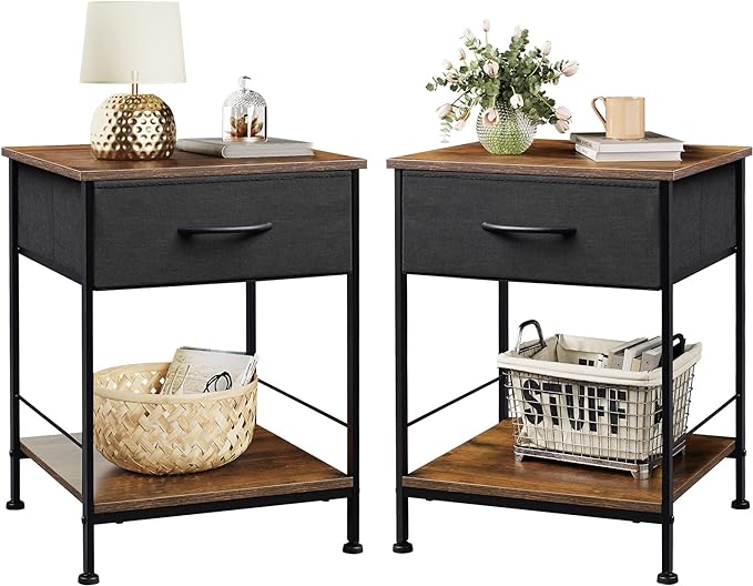 WLIVE Night Stand Set 2, Black and Rustic Brown