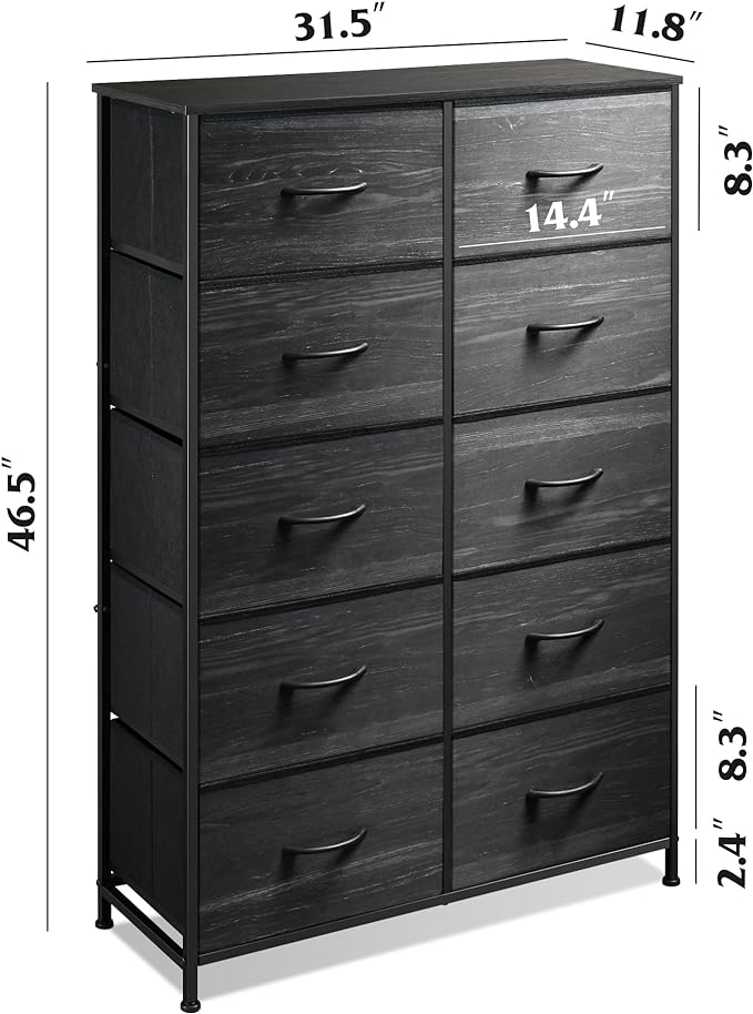WLIVE Tall Dresser for Bedroom with 10 Drawer (Charcoal Black Wood Grain Print)