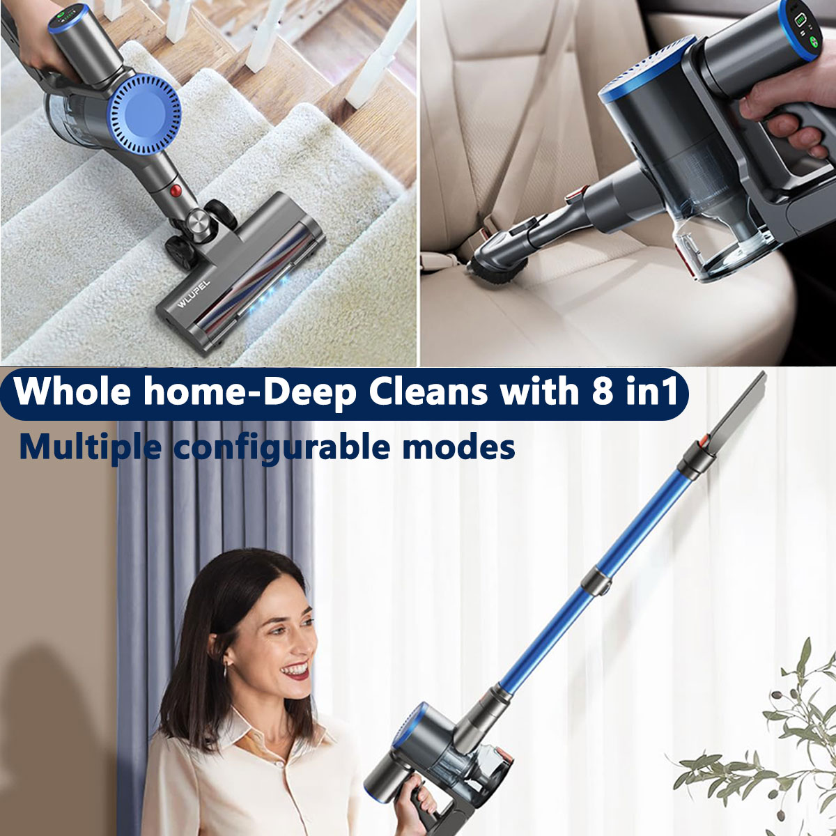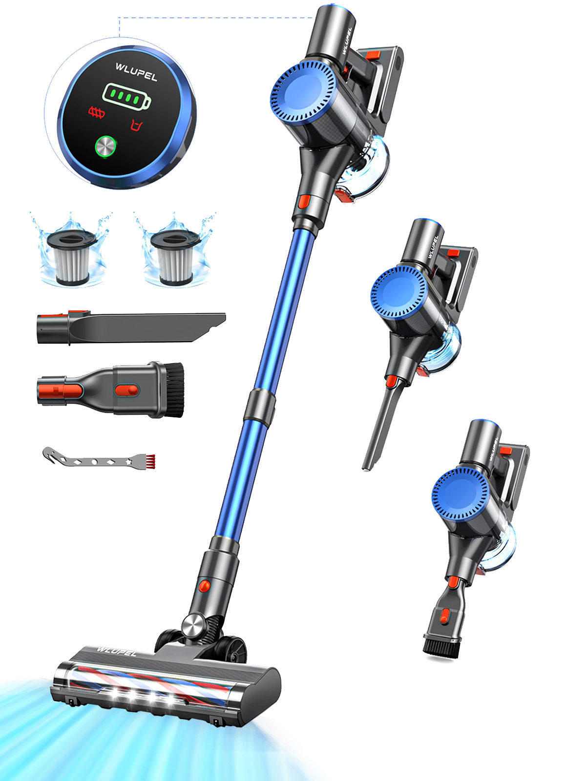 WLUPEL Cordless Vacuum Cleaner 45mins 33Kpa 400W IQ Display Lightweight Stick Vacuum for Carpets Hardwood Floor Pet Hair Home Rechargeable