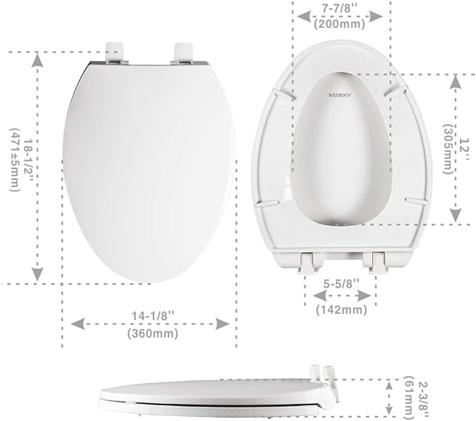 - 【What you will get】1 x WSSROGY elongated toilet seat; 2 x metal screws; 2 x plastic screws; 2x rubber pads; 1x user manual; 1x thank you card; We promise that you can replace the toilet seats for free within one year if it is damaged due to quality problems.