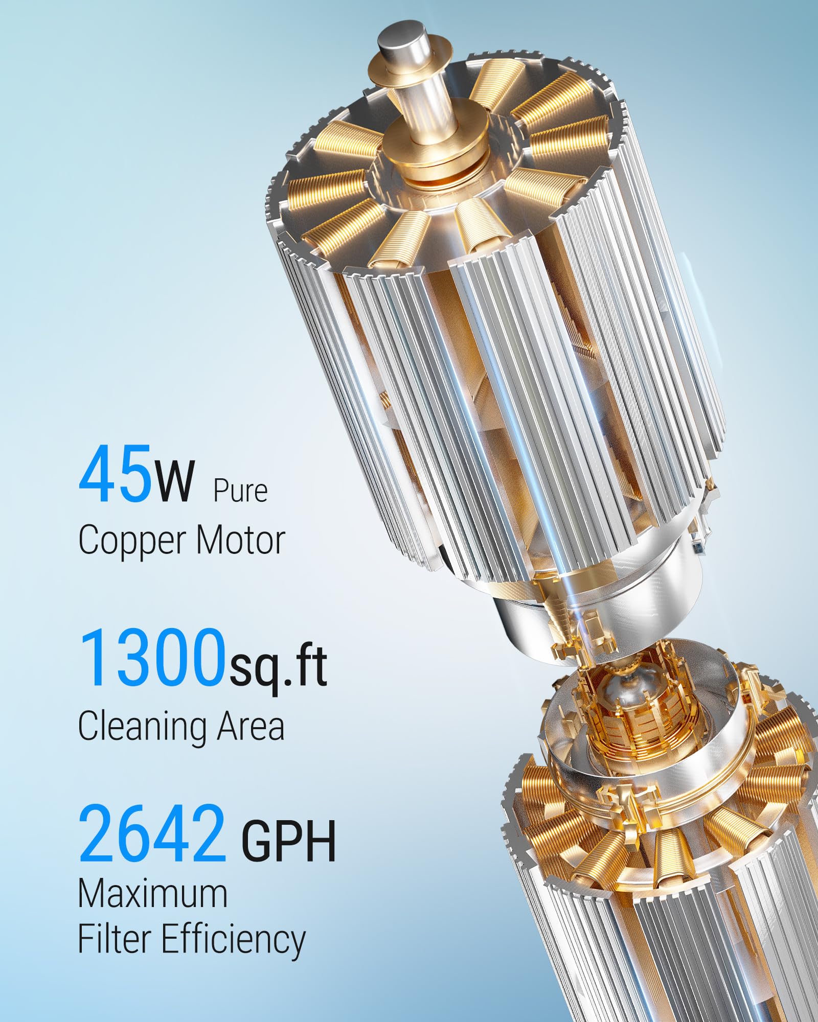 - Upgraded Powerful Suction: Equipped with a powerful 45W brushless motor, Wybot Pool Cleaner easily captures the sand, dirt, leaves, dust and debris, restoring your pool sparkle again.