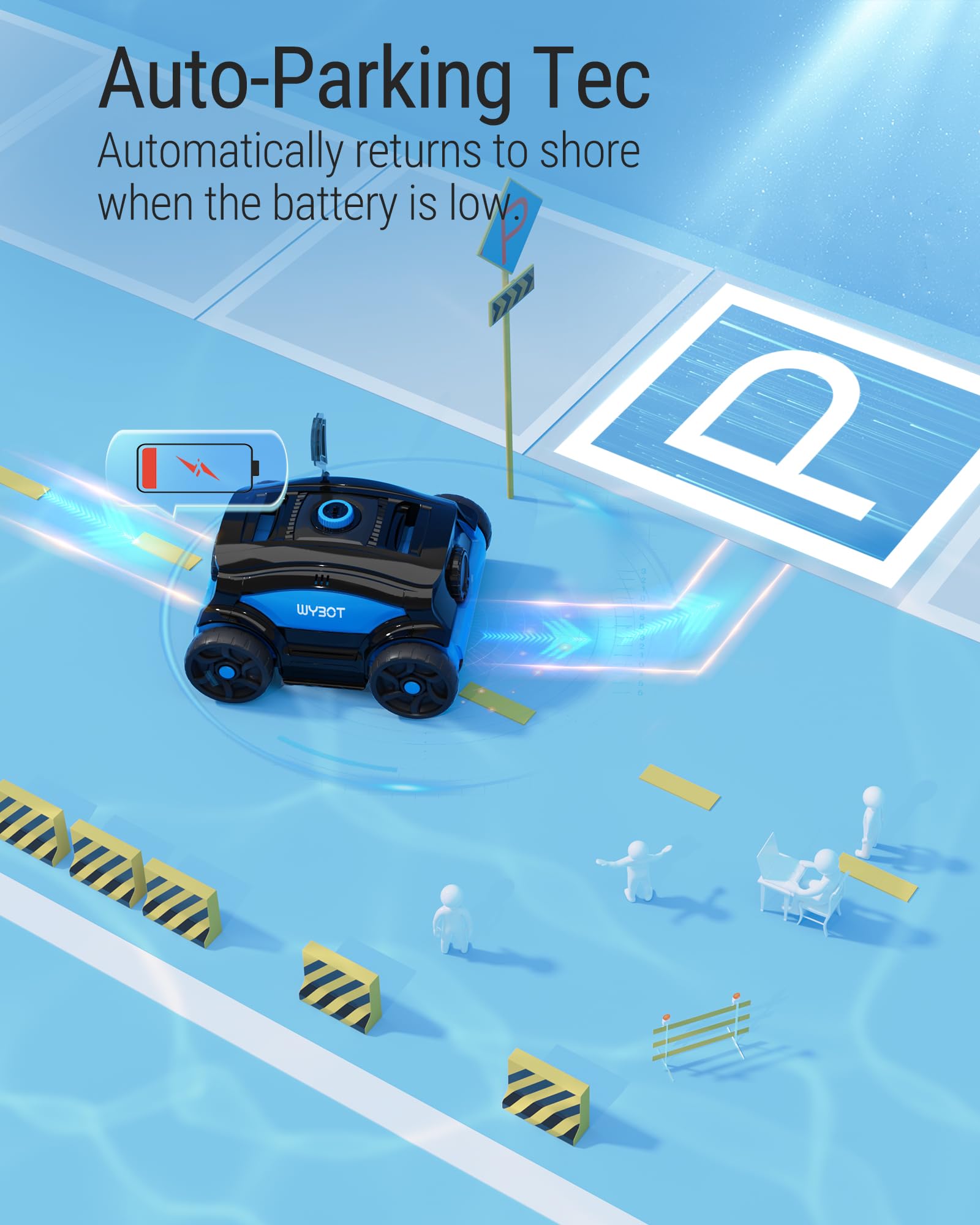 - Auto-parking Technology: The pool robot will automatically park near the shore when the battery is low or after completing a cleaning cycle. The floating rope helps easy remove the pool cleaner from the pool. Do not need to worry about get wet. Effortless pop-out feature allows for easy cleaning, take off the filter tray and clean it with a garden hose.