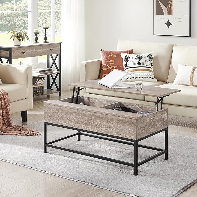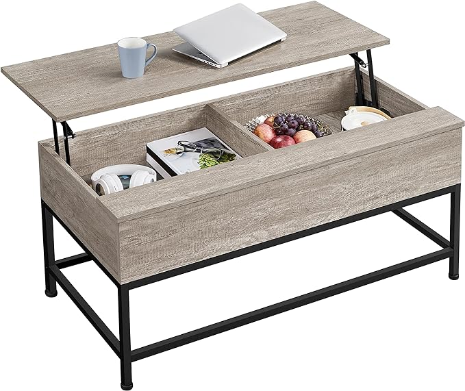 - 【Split lift-top design】The coffee table features a functional split tabletop – a pneumatic-lift top on one side and a fixed surface on the other. The lift-top design can bring the tabletop to you when you’re relaxing on the couch, while the fixed surface can still hold cups, dishes, and laptops.