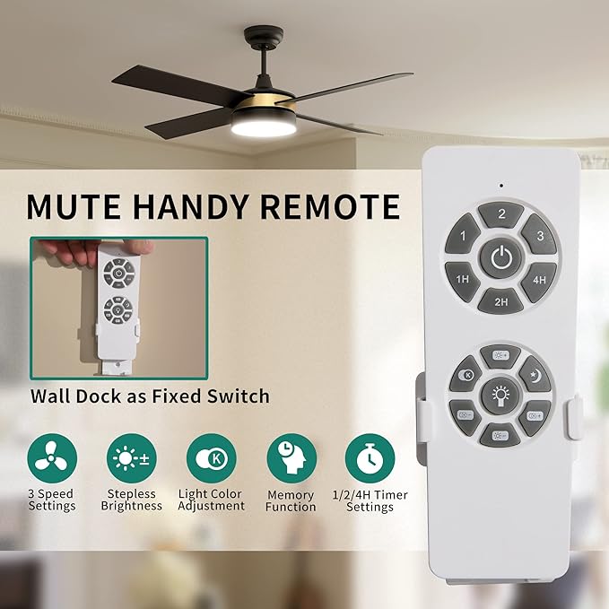 - HANDY REMOTE: Tap the switch of light and speed anywhere anytime with no annoying beep, and 2/8 timer function makes your daily routines more regularly or gives you a worriless sleep; a wall-mount holder included is an intimate design for the unwary.