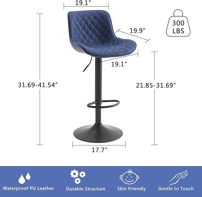 - 🥛【Adjustable Seat Height】The kitchen island bar stools can 360˚ rotate to switch directions freely. The height of the seat can be adjusted in the range of 21.85\”-31.69\” by a lift lever under the seat. It can meet your personal needs to different seat height for various sitting position.